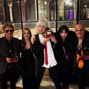 Charly Alberti y Zeta Bosio, acompañados por la familia de Gustavo Cerati, recibieron hoy en Sevilla, España el primer Latin Grammy para Soda Stereo, en reconocimiento a la «Excelencia Musical» 2023.